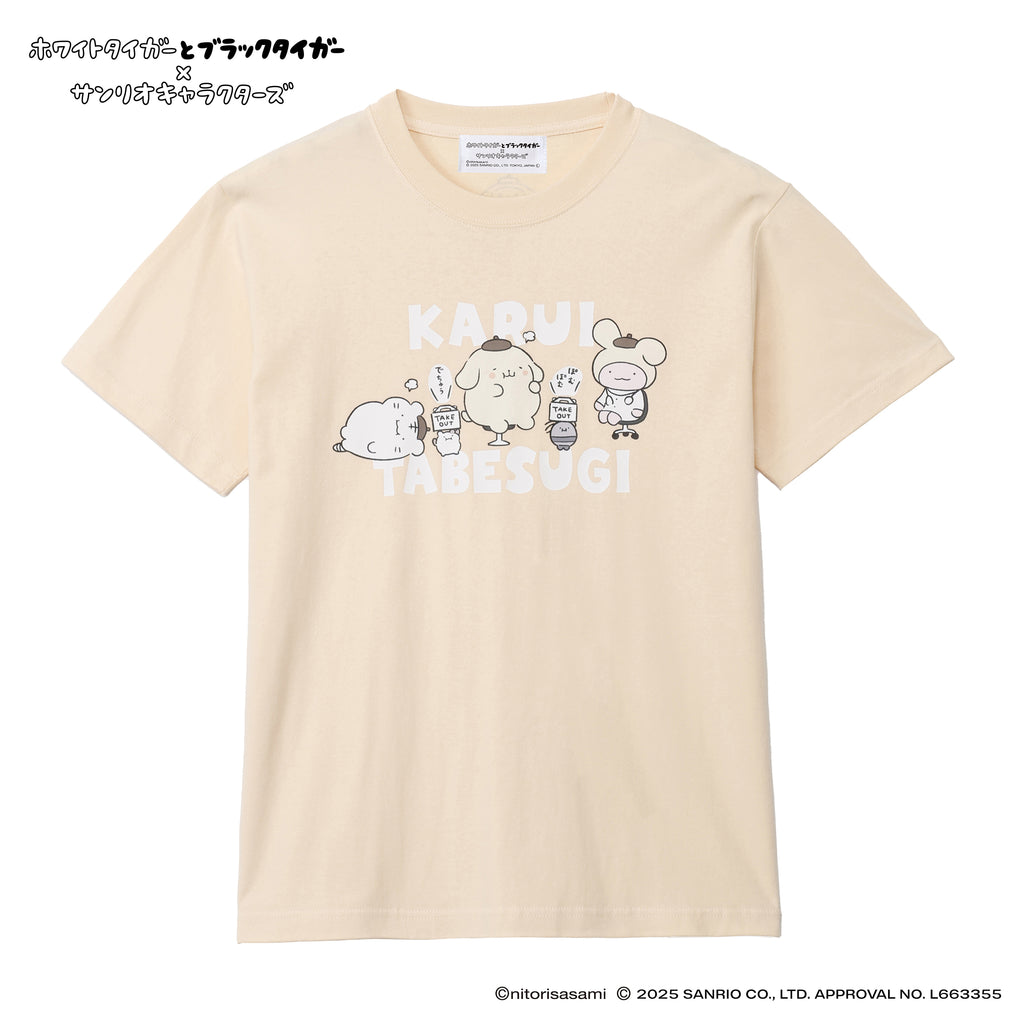 ホワイトタイガーとブラックタイガー×サンリオキャラクターズ Tシャツ KARUITABESUGI ナチュラル