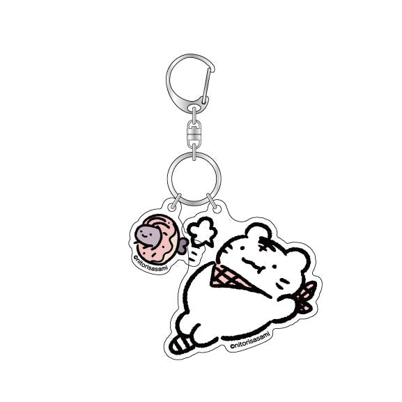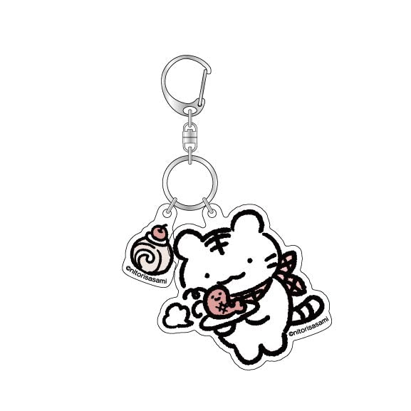 ホワイトタイガーとブラックタイガー×サンリオキャラクターズ チャーム付きアクリルキーホルダー(軽い食べすぎですね)