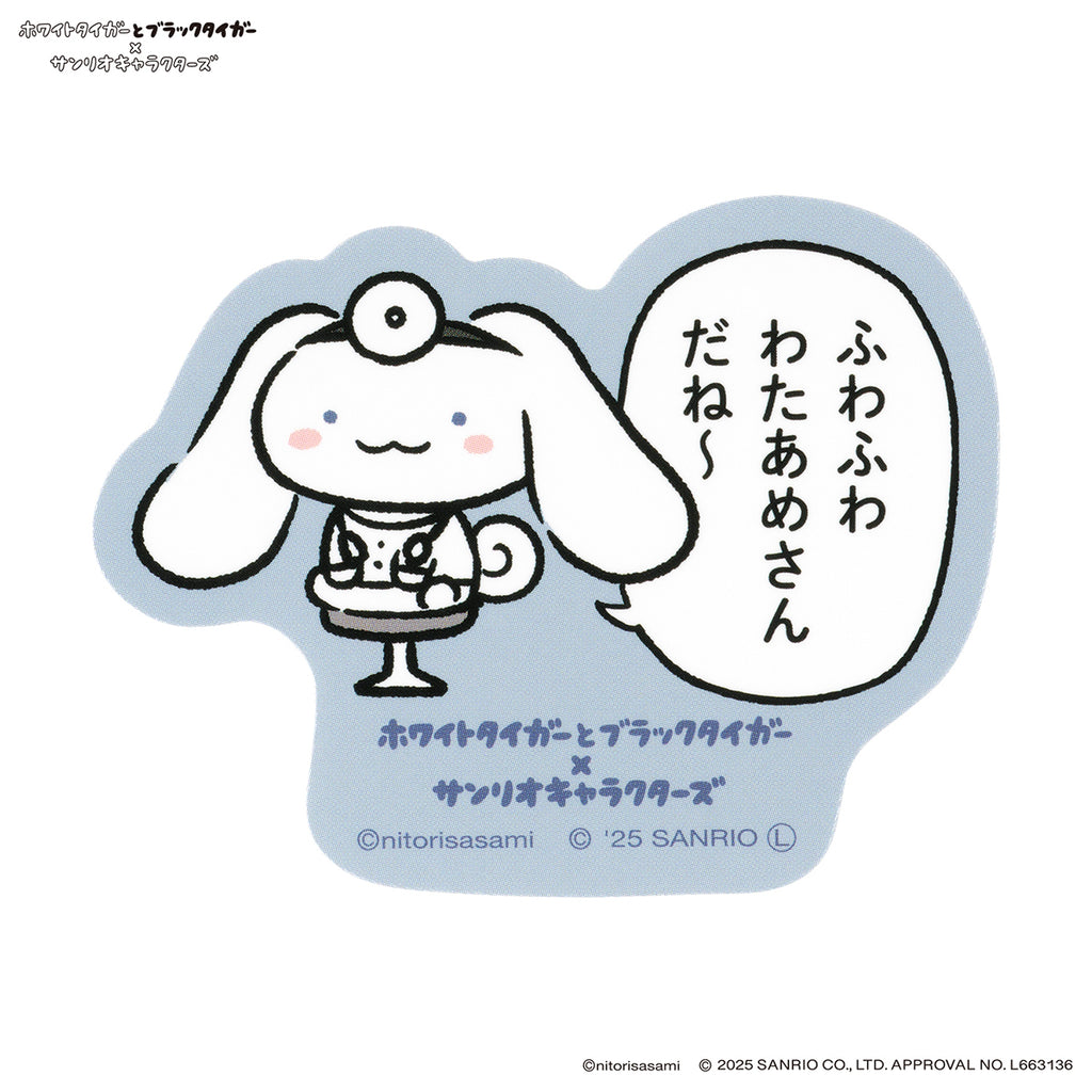 ホワイトタイガーとブラックタイガー×サンリオキャラクターズ スマホに貼れるサイズのステッカー(ふわふわわたあめさんだね〜)