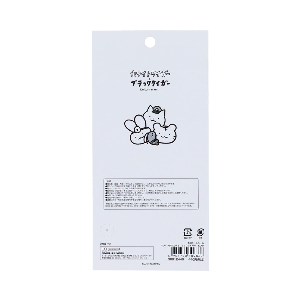 ホワイトタイガーとブラックタイガー 透明シートシール ピンク